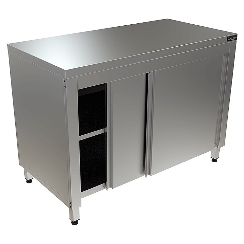 Стол-тумба Кобор СТ-120/70/К произведена из высококачественной нержавеющей стали, что позволяет использовать предмет в различных цехах. Комплектация стола включает в себя двери-купе. Во избежание прогибов столешница усилена листом ЛДСП толщиной 16 мм. Ножки изделия регулируются по высоте, для исключения проблем с неровным напольным покрытием, предотвращая наклон рабочей поверности.