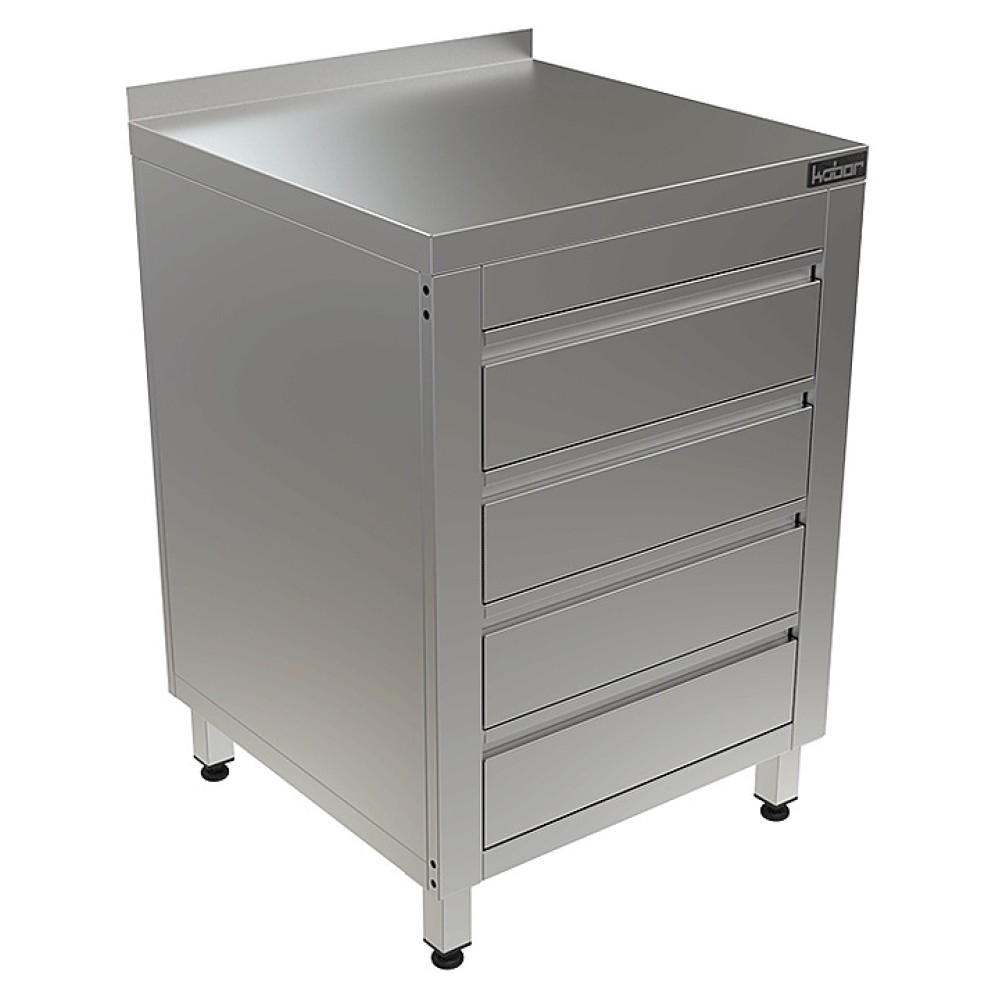 Стол-тумба Кобор СТБ/1-40/70 произведена из высококачественной нержавеющей стали, что позволяет использовать предмет в различных цехах. Во избежание прогибов столешница усилена листом ЛДСП толщиной 16 мм. Ножки изделия регулируются по высоте, для исключения проблем с неровным напольным покрытием, предотвращая наклон рабочей поверности.