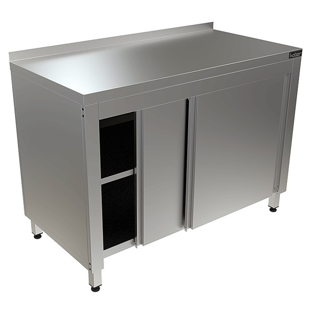 Стол-тумба Кобор СТБ-90/70/К произведена из высококачественной нержавеющей стали, что позволяет использовать предмет в различных цехах. Комплектация стола включает в себя двери-купе. Во избежание прогибов столешница усилена листом ЛДСП толщиной 16 мм. Ножки изделия регулируются по высоте, для исключения проблем с неровным напольным покрытием, предотвращая наклон рабочей поверности.