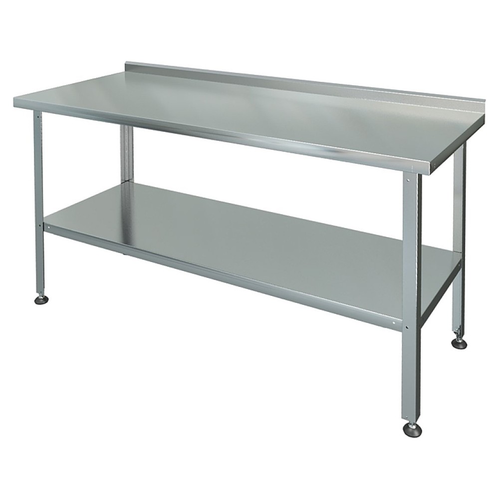 Производственный стол Марихолодмаш СРП-1-0,6/1,0-П предназначен для раскатки теста и обработки ингредиентов для приготовления блюд, а также может использоваться в качестве дополнительного места для установки кухонных приборов на предприятиях общественного питания и торговли. Рабочая поверхность, усиленная ЛДСП толщиной 15 мм, выполнена из нержавеющей стали AISI 430 толщиной 0,5 мм, полка - из нержавеющей стали AISI 430, ножки с регулируемыми опорами - из уголка 40х40 мм из оцинкованной стали толщиной 1 мм с подгибом краёв вовнутрь.