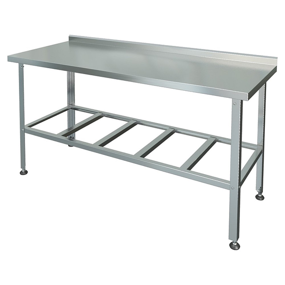 Производственный стол Марихолодмаш СРП-1-0,7/1,2 предназначен для раскатки теста и обработки ингредиентов для приготовления блюд, а также может использоваться в качестве дополнительного места для установки кухонных приборов на предприятиях общественного питания и торговли. Рабочая поверхность, усиленная ЛДСП толщиной 15 мм, выполнена из нержавеющей стали AISI 430 толщиной 0,5 мм, ножки с регулируемыми опорами - из уголка 40х40 мм из оцинкованной стали толщиной 1 мм с подгибом краёв вовнутрь.