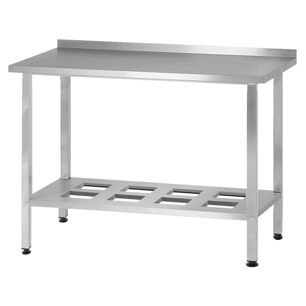 Производственный стол Mecon Norma Ral СПРн предназначен для разделывания и обработки пищевых продуктов, а также в качестве вспомогательной поверхности для кухонного оборудования на предприятиях пищевой промышленности, общественного питания и торговли. Модель оснащена усиленной полкой-решеткой и регулируемыми по высоте полиамидными опорами. Ножки выполнены из профильной трубы 40х40 мм с полимерно-порошковым покрытием с базирующими пуклевками, столешница - из шлифованной пищевой нержавеющей стали AISI 430 с усилением подложкой из ЛДСП, полка - из стали с полимерно-порошковым покрытием.