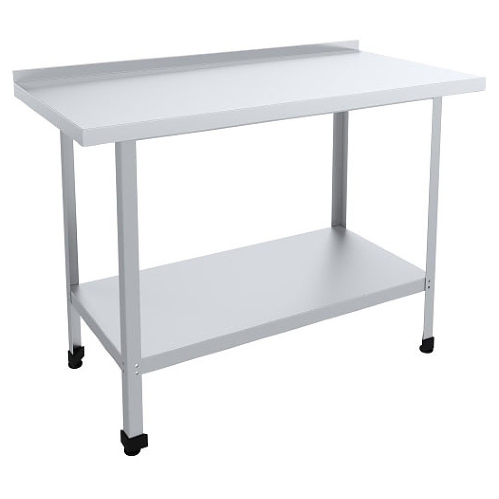 Производственный стол Пищевые Технологии СРОб-6/6СЦК-П серии Стандарт предназначен для обработки продуктов питания, раскатки теста и хранения кухонного инвентаря на предприятиях общественного питания и торговли. Модель оснащена бортом, сплошной полкой с ребром жесткости из оцинкованной стали и регулируемыми по высоте ножками. Каркас выполнен из оцинкованного уголка, столешница - из нержавеющей стали AISI 430 с усилением из листа ЛДСП.