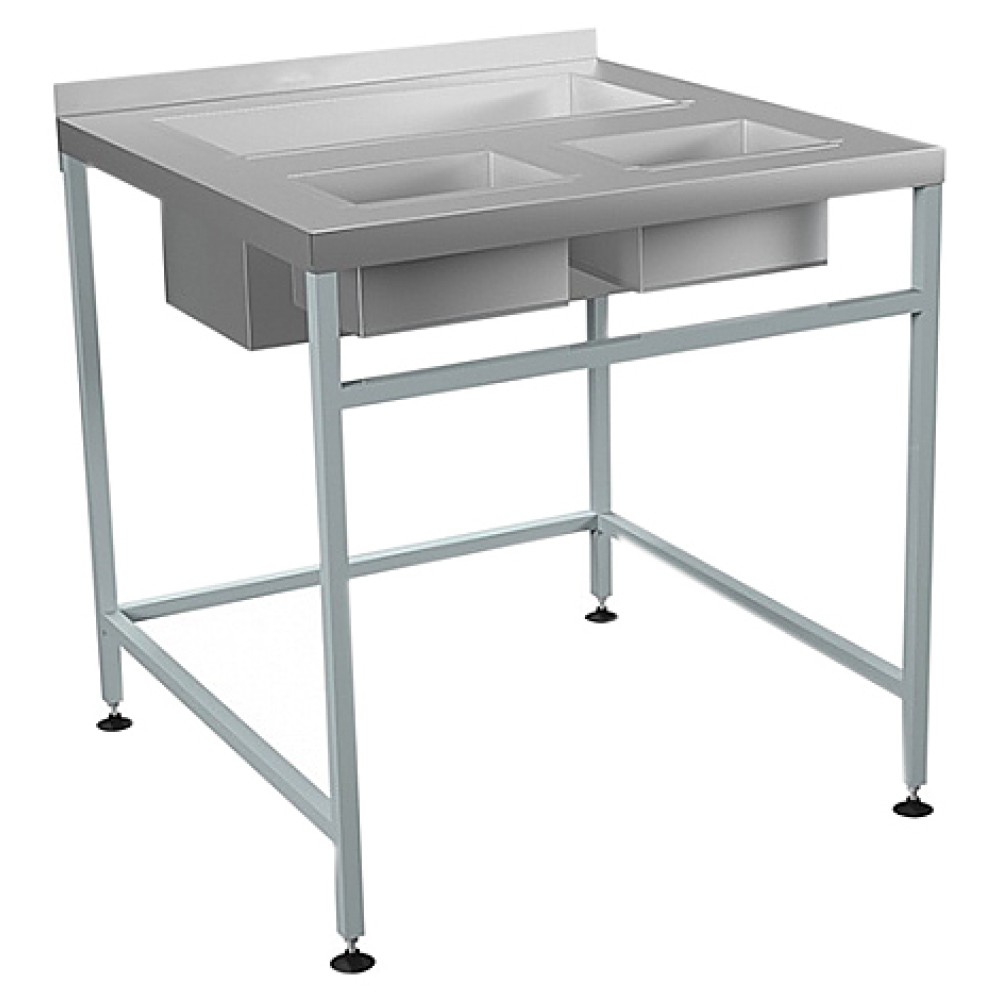 Производственный стол Пищевые Технологии СРОд-840х840х860 предназначен для дочистки и обработки корнеплодов и овощей на предприятиях общественного питания и торговли. Модель оснащена 1 герметичной съемной ванной и 2 прямоугольными отверстиями с патрубками. Сварной каркас выполнен из профильной трубы, окрашенной порошковой краской, столешница - из нержавеющей стали AISI 430 с усилением из листа ЛДСП.