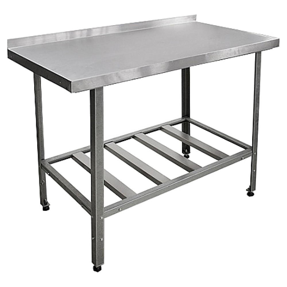 Производственный стол Пищевые Технологии Стандарт ЦК СРОб-12/7СЦК предназначен для обработки продуктов питания, раскатки теста и хранения кухонного инвентаря на предприятиях общественного питания и торговли. Модель оснащена регулируемыми по высоте ножками. Каркас выполнен из оцинкованного уголка, столешница - из нержавеющей стали AISI 430 с усилением из листа ЛДСП, полка-решетка - из нержавеющей стали AISI 430.