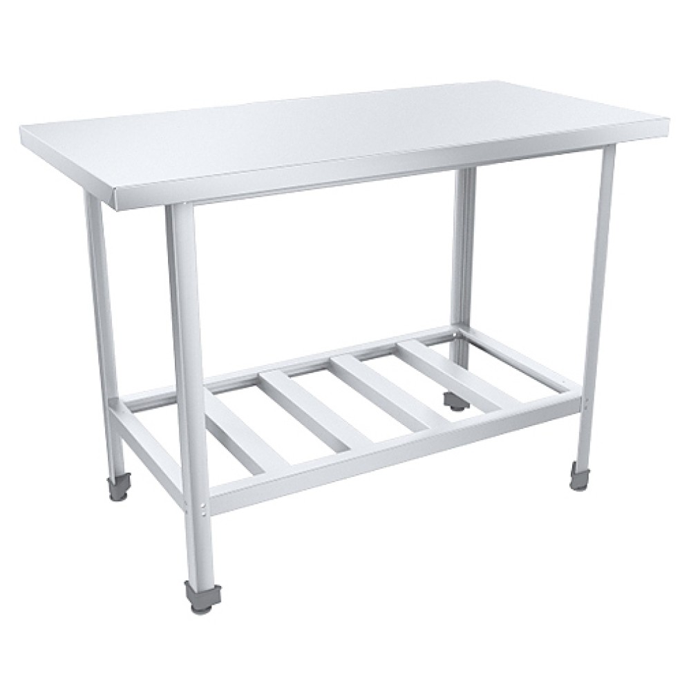 Производственный стол ПищТех Стандарт НК СРО-12/7С304НК-М предназначен для обработки продуктов питания, раскатки теста и хранения кухонного инвентаря на предприятиях общественного питания и торговли. Модель оснащена регулируемыми по высоте ножками. Каркас выполнен из нержавеющего уголка 38х38 мм, столешница - из нержавеющей стали AISI 304 с усилением из листа ЛДСП, полка-решетка - из нержавеющей стали AISI 430.