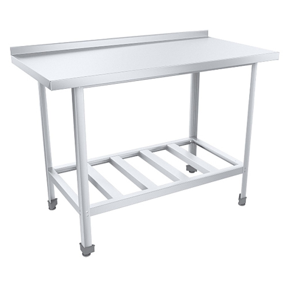 Производственный стол ПищТех Стандарт НК СРОб-112/6СНК предназначен для обработки продуктов питания, раскатки теста и хранения кухонного инвентаря на предприятиях общественного питания и торговли. Модель оснащена регулируемыми по высоте ножками. Каркас выполнен из нержавеющего уголка, столешница - из нержавеющей стали AISI 430 с усилением из листа ЛДСП, полка-решетка - из нержавеющей стали AISI 430.