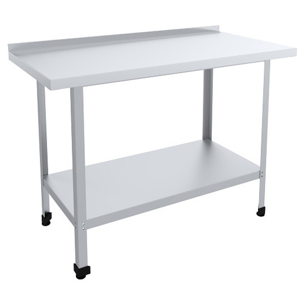 Производственный стол Пищевые Технологии Стандарт СРОб-10/6СЦК-П предназначен для обработки продуктов питания, раскатки теста и хранения кухонного инвентаря на предприятиях общественного питания и торговли. Модель оснащена бортом и регулируемыми по высоте ножками. Каркас выполнен из оцинкованного уголка, столешница - из нержавеющей стали AISI 430 с усилением из листа ЛДСП, сплошная полка - из нержавеющей стали AISI 430.
