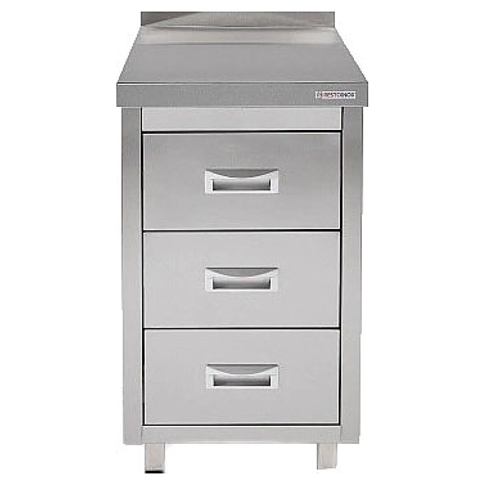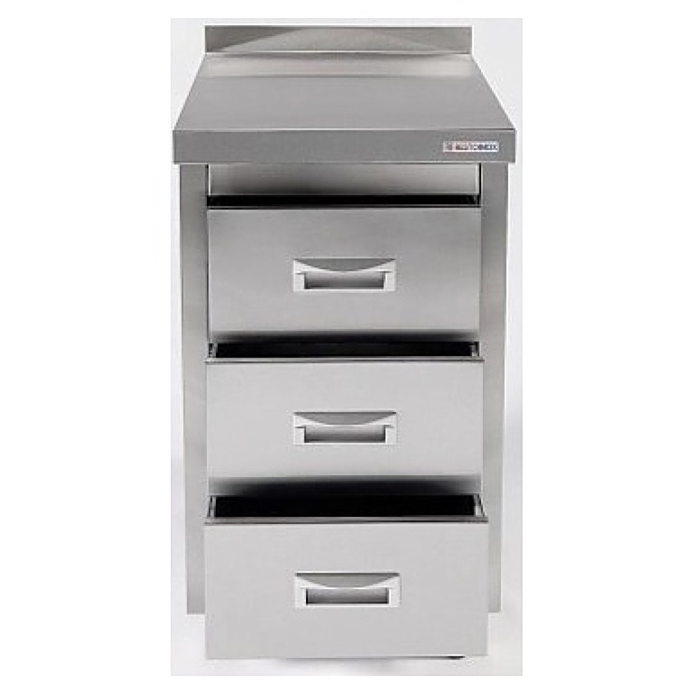 Производственный стол Restoinox СП3Я-5/6-Б предназначен для обработки продуктов питания, раскатки теста и хранения кухонного инвентаря, также для размещения малогабаритного оборудования на предприятиях общественного питания и торговли. Модель оснащена регулируемыми по высоте опорами и выдвижными ящиками. Ножки выполнены из квадратной трубы 40х40 мм из нержавеющей стали Aisi 430, корпус, рабочая поверхность и ящики - из нержавеющей стали Aisi 430, задняя стенка - из оцинкованной стали, столешница усилена листом ЛДСП.