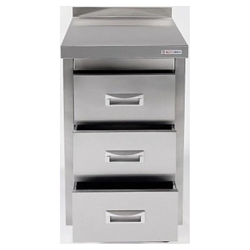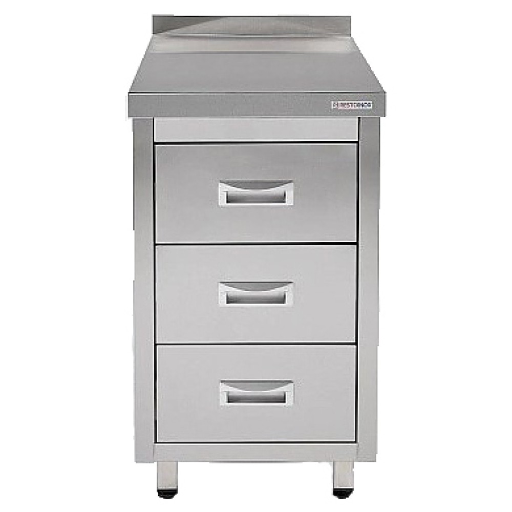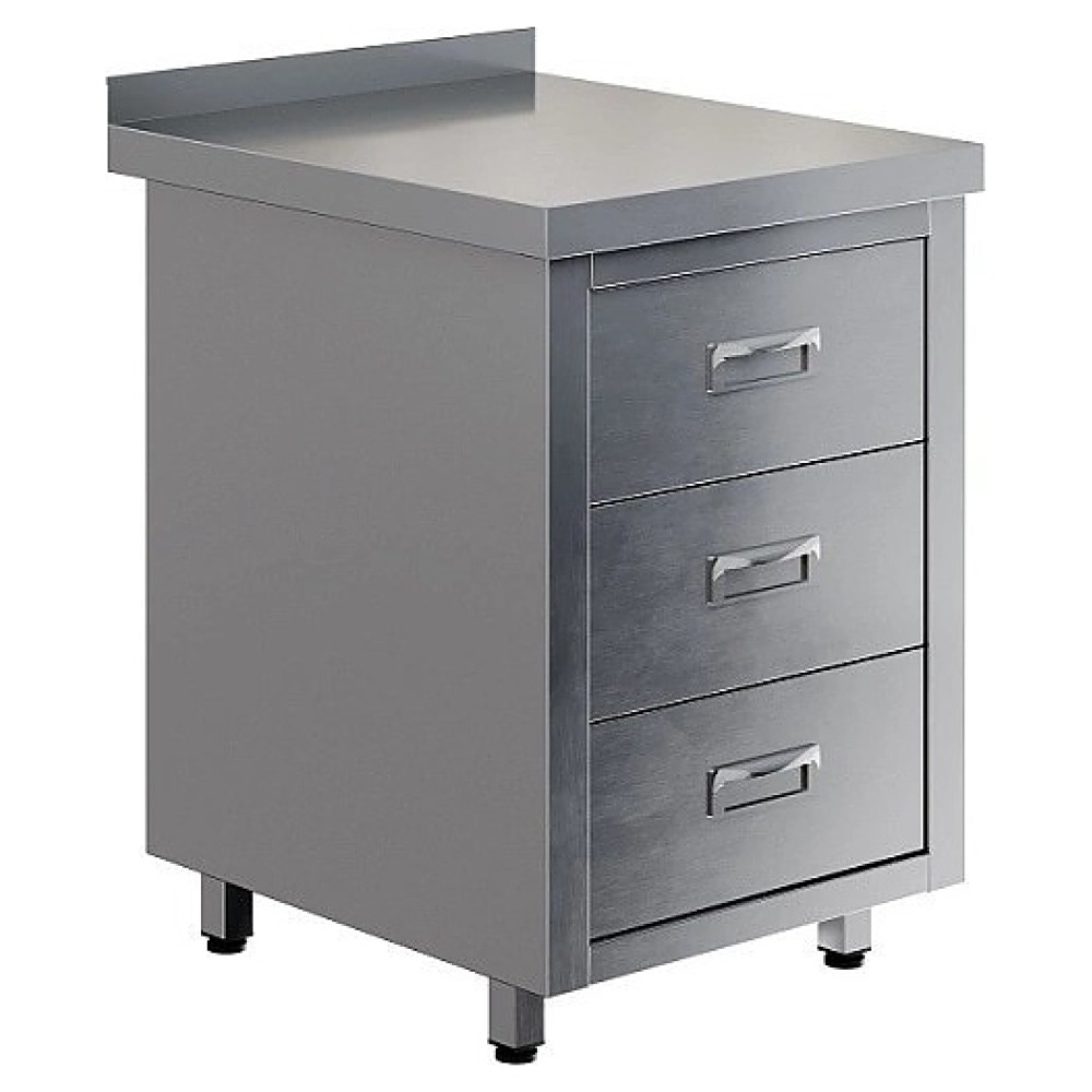 Производственный стол Restoinox СП3Я-6/6-Б предназначен для обработки продуктов питания, раскатки теста и хранения кухонного инвентаря, также для размещения малогабаритного оборудования на предприятиях общественного питания и торговли. Модель оснащена регулируемыми по высоте опорами и выдвижными ящиками. Ножки выполнены из квадратной трубы 40х40 мм из нержавеющей стали Aisi 430, корпус, рабочая поверхность и ящики - из нержавеющей стали Aisi 430, задняя стенка - из оцинкованной стали, столешница усилена листом ЛДСП.