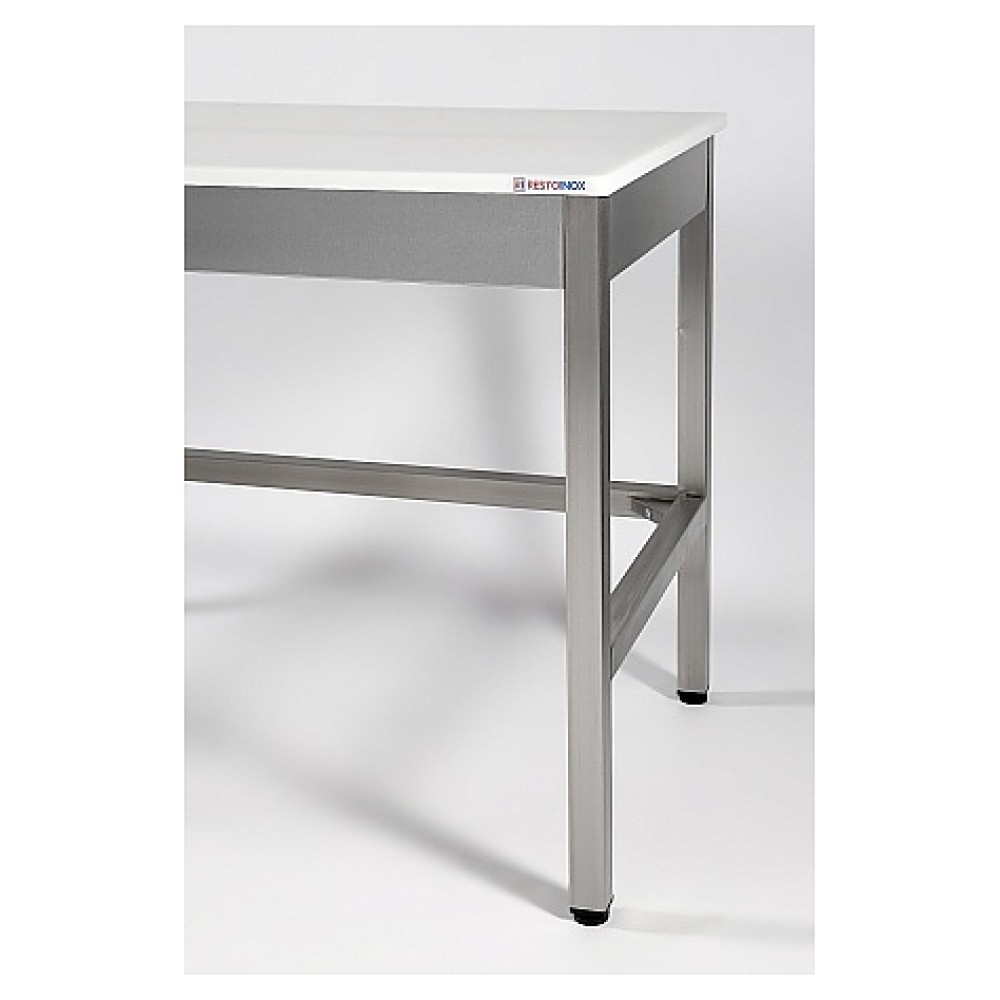 Производственный стол Restoinox СПП-18/6-О предназначен для обработки продуктов питания, раскатки теста и хранения кухонного инвентаря, также для размещения малогабаритного оборудования на предприятиях общественного питания и торговли. Модель оснащена регулируемыми по высоте опорами и трехсторонней обвязкой. Ножки выполнены из квадратной трубы 40х40 мм из нержавеющей стали Aisi 430, дополнительно усилены металлическими пластинами толщиной 1 мм, обвязка - из нержавеющей стали Aisi 430, столешница - из полипропилена.