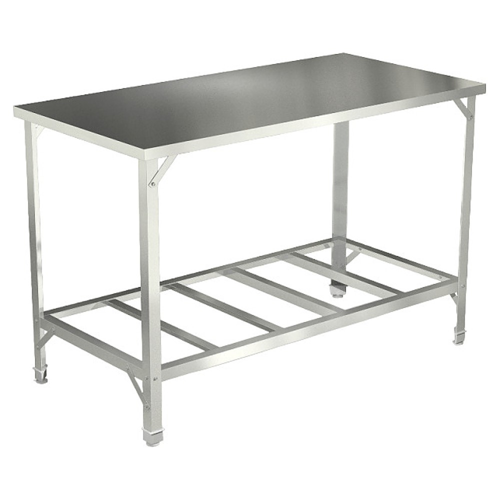 Производственный стол Техно-ТТ AppetiTT СПРО-957н предназначен для разделки и обработки пищевых продуктов, а также для расстановки и хранения посуды и кухонного инвентаря на предприятиях общественного питания и торговли. Столешница выполнена из нержавеющей стали AISI 430 с подложкой из ДСП, каркас - из нержавеющей стали AISI 430 толщиной 1,5 мм, полка-решетка из нержавеющей стали AISI 430 толщиной 0,8 мм.