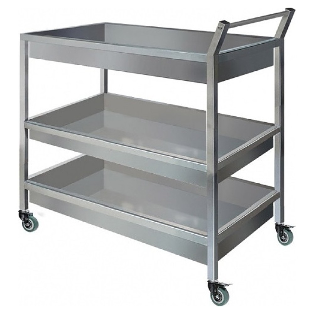 Тележка Finist ТСП 800х500х1000 мм используется на предприятиях общественного питания и торговли для сбора и транспортировки грязной посуды из обеденного зала в моечное отделение. Модель оснащена сварным каркасом, 3 съемными поддонами с бортами, рукояткой и 4 поворотными колесами, включая 2 со стояночным тормозом. Каркас и поддоны выполнены из нержавеющей стали. Изделие поставляется в собранном виде.