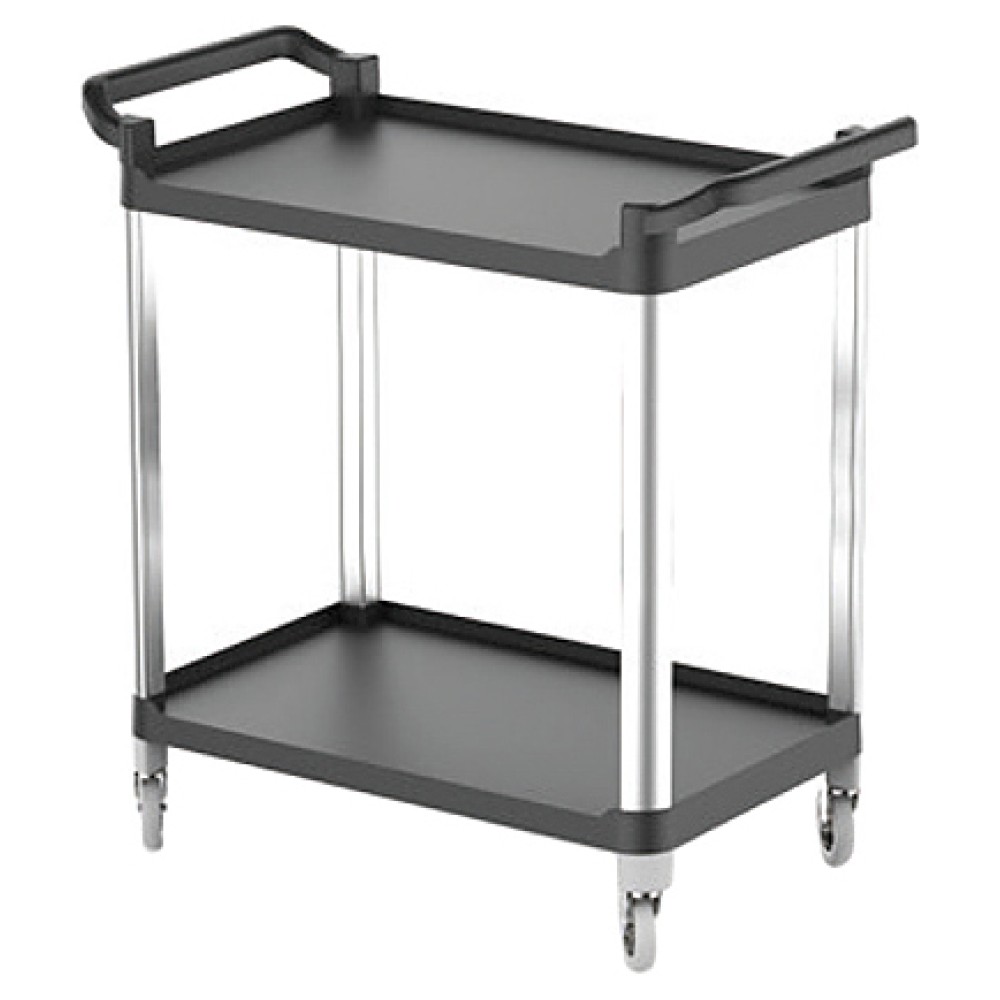 Сервировочная тележка Empero EMP.PSV.02 используется на предприятиях общественного питания для перемещения готовых блюд, напитков и посуды в зал приема пищи, а также для подачи грязной посуды из зала в моечное отделение. Модель оснащена 2 вместительными полками и 4 подвижными колесами. Стойки выполнены из алюминия, полки - из ударопрочного пластика.