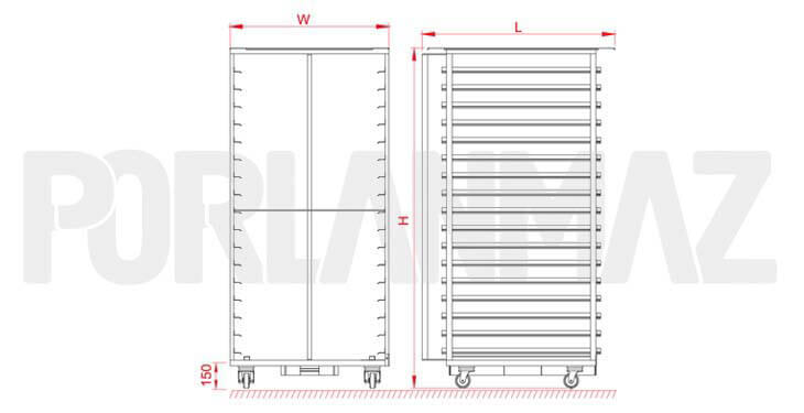 Вкатная тележка-шпилька Porlanmaz Bakery Machinery PMDF 50T используется совместно с ротационными печами PMDF 50 для загрузки противней и выпекания кондитерских и хлебобулочных изделий на предприятиях общественного питания и торговли. Модель оснащена поворотными колесами. Изделие выполнено из нержавеющей стали.