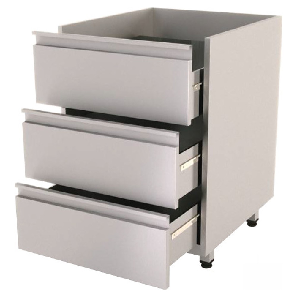 Тумба КАМИК BULL БЛ-348655 предназначена для установки в составе модульной кухни на летних площадках предприятий общественного питания и торговли, гостиниц, а также во дворах, беседках или на верандах частных жилых или дачных домов. Модель оснащена 3 выдвижными ящиками на роликовых направляющих и устойчивыми опорами. Изделие выполнено из высококачественной нержавеющей стали марки AISI 304.
