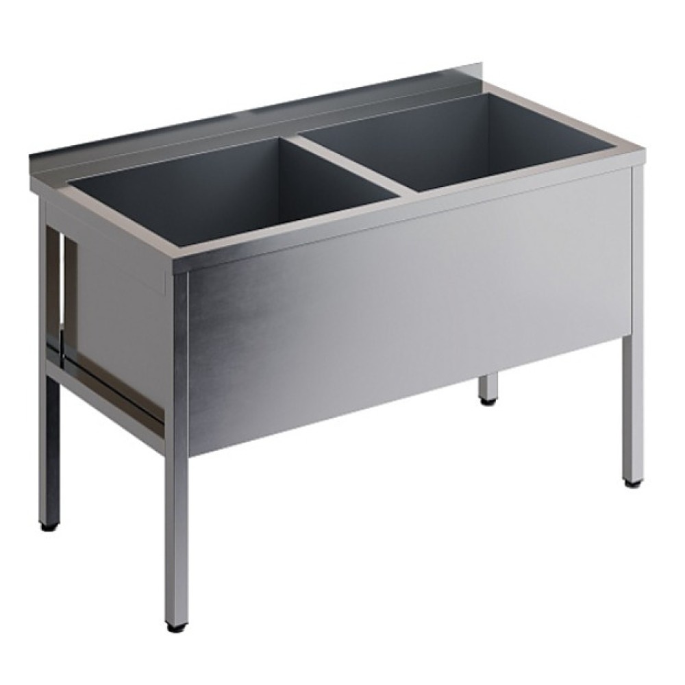 Котломоечная ванна Restoinox ВМСК-2/14/7-Б используется на предприятиях общественного питания и торговли для мытья посуды и крупногабаритного кухонного инвентаря. Модель оснащена фартуком и площадкой под смеситель с бортом. Каркас выполнен из трубы 40х40 мм нержавеющей стали AISI 430, емкость - из нержавеющей стали AISI 430.