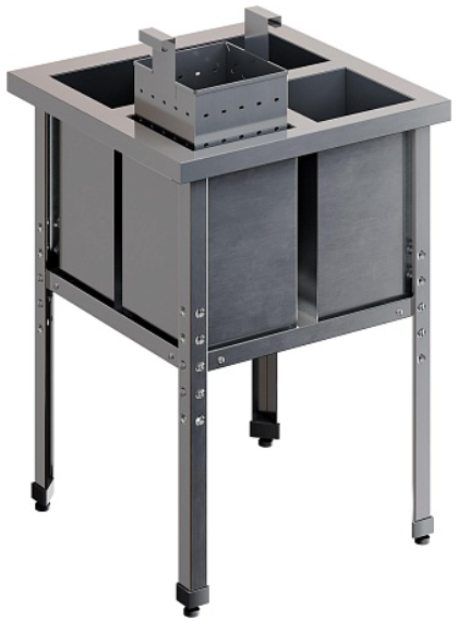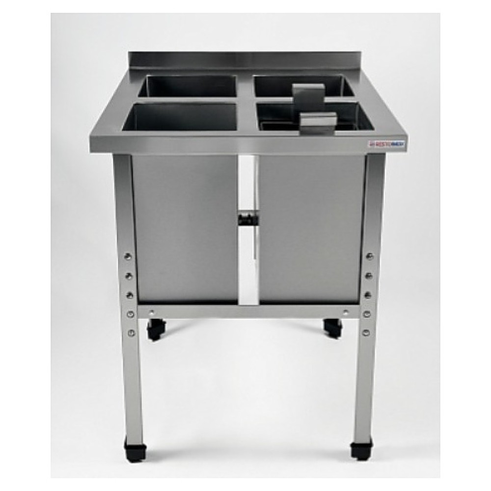 Моечная ванна Restoinox ВМСЯ-1/6-Б-ЭН используется на предприятиях общественного питания и торговли для санитарной обработки яиц. Модель оснащена обвязкой с 4-х сторон и площадкой с отверстием под смеситель с бортом. Каркас выполнен из уголка 40х40 мм нержавеющей стали AISI 430, обвязка и емкость - из нержавеющей стали AISI 430.