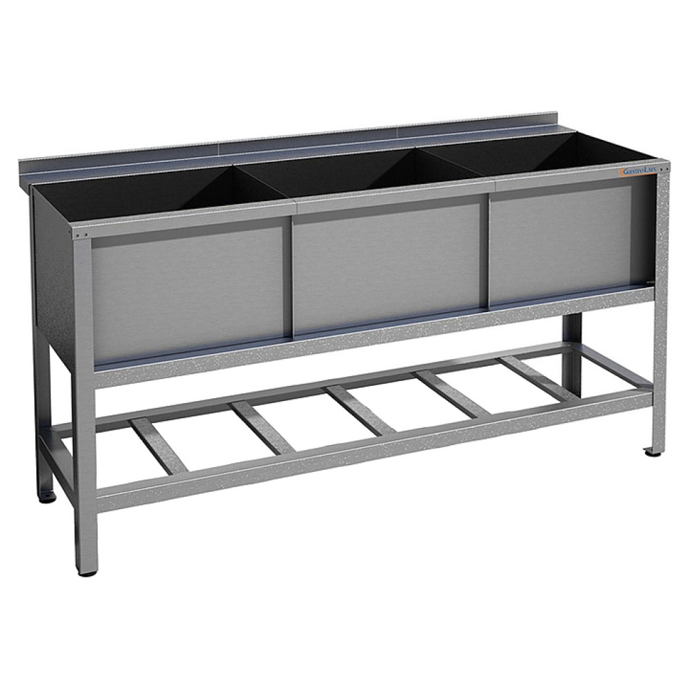 Моечная ванна Gastrolux ВМ 3-1970Н/Е серии Econom предназначена для мойки приборов, посуды, кухонных принадлежностей и продуктов на предприятиях общественного питания. Корпус выполнен из нержавеющей стали AISI 430, каркас - из нержавеющего профиля AISI 430 40х40 мм.