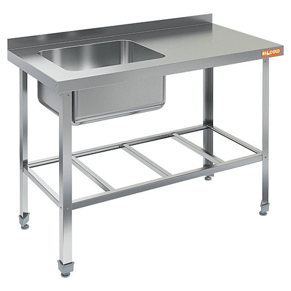 Моечная ванна HICOLD НСО1М-12/7БРЛ ЭН используется на предприятиях пищевой промышленности, общественного питания и торговли для мойки продуктов питания, посуды и кухонных принадлежностей. Каркас выполнен из уголка 40x40 мм нержавеющей стали AISI 430 толщиной 0,8 мм, столешница - из нержавеющей стали AISI 430 толщиной 1 мм с ребрами жесткости.