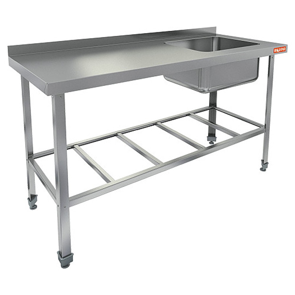 Моечная ванна HICOLD НСО1М-16/6БРП ЭН используется на предприятиях пищевой промышленности, общественного питания и торговли для мойки продуктов питания, посуды и кухонных принадлежностей. Каркас выполнен из уголка 40x40 мм нержавеющей стали AISI 430 толщиной 0,8 мм, столешница - из нержавеющей стали AISI 430 толщиной 1 мм с ребрами жесткости.