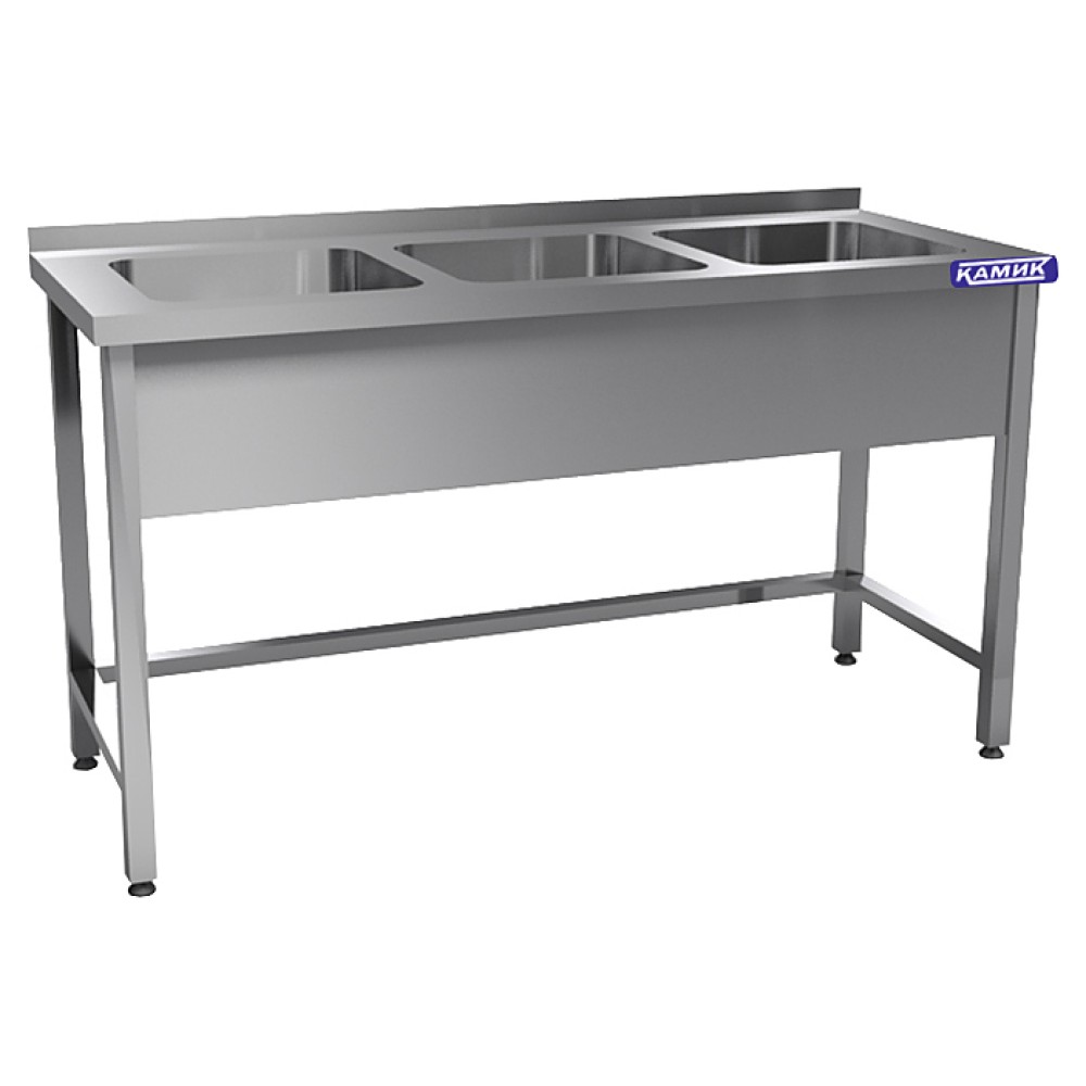 Моечная ванна КАМИК ВМ-3-44217 используется на предприятиях общественного питания и торговли для мойки посуды, овощей и фруктов. Сварной каркас и столешница выполнены из нержавеющей стали AISI 430, цельнотянутая емкость - из нержавеющей стали AISI 304.
