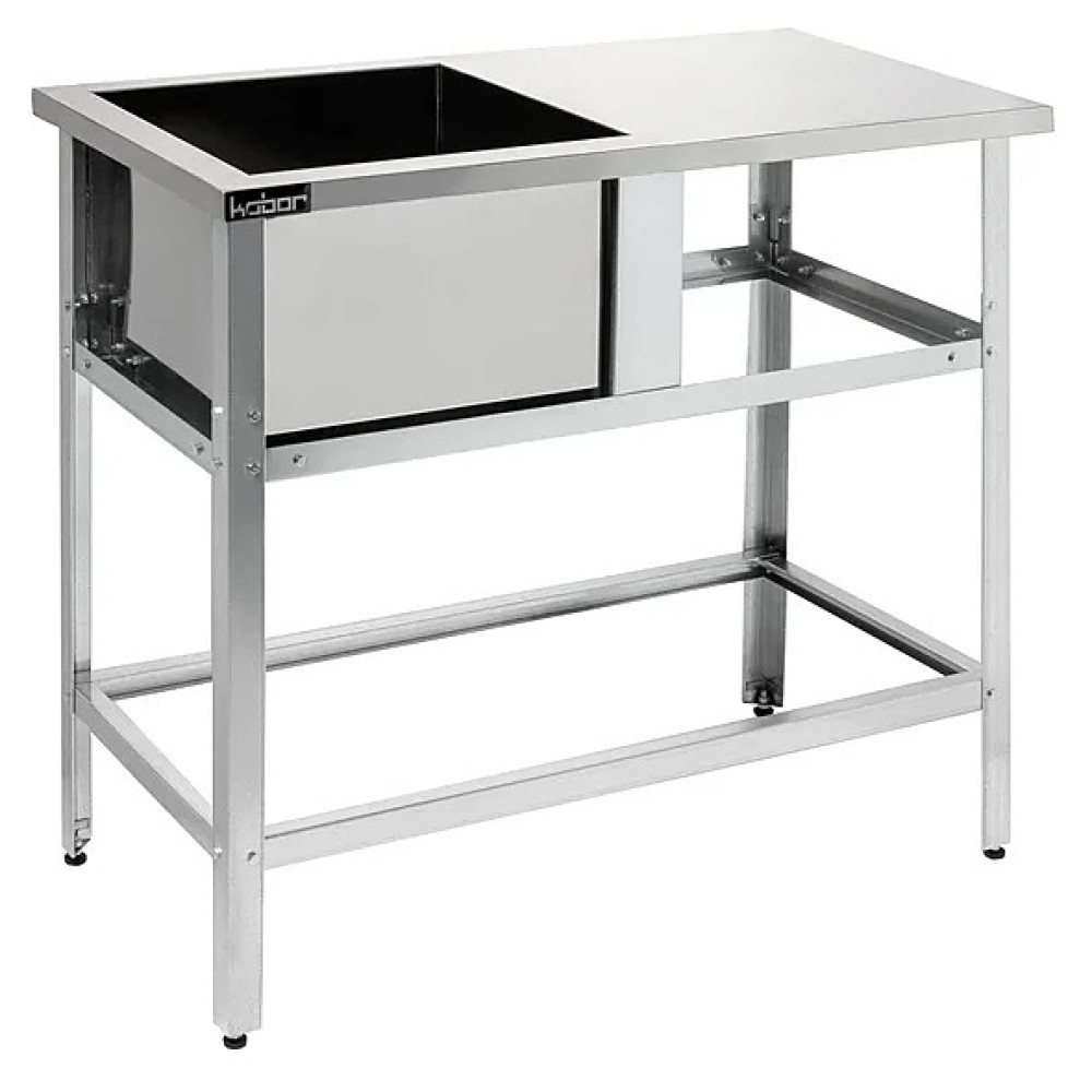 Емкость ванны Кобор ВМСР/1-100/53 выполнена из высококачественной нержавеющей стали. Технология сварки швов ванны обеспечивает не только герметичность соединения, но и прочность конструкции. Ножки изготовлены в виде уголка 40х40 мм из нержавеющей стали и регулируются по высоте, что помогает избежать неустойчивости рабочей конструкции.