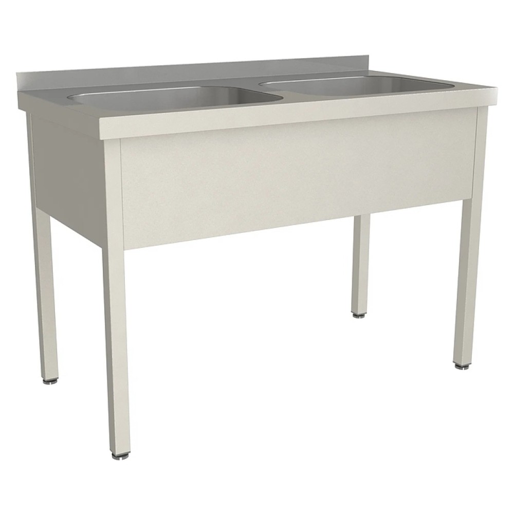 Моечная ванна Restoinox ВМЦ-2/10/6-Б используется на предприятиях общественного питания и торговли для мытья посуды, кухонного инвентаря и продуктов. Модель оснащена фартуком с 3-х сторон и бортом. Каркас выполнен из трубы 40х40 мм нержавеющей стали AISI 430, фартук - из нержавеющей стали, емкость - из нержавеющей стали AISI 304.