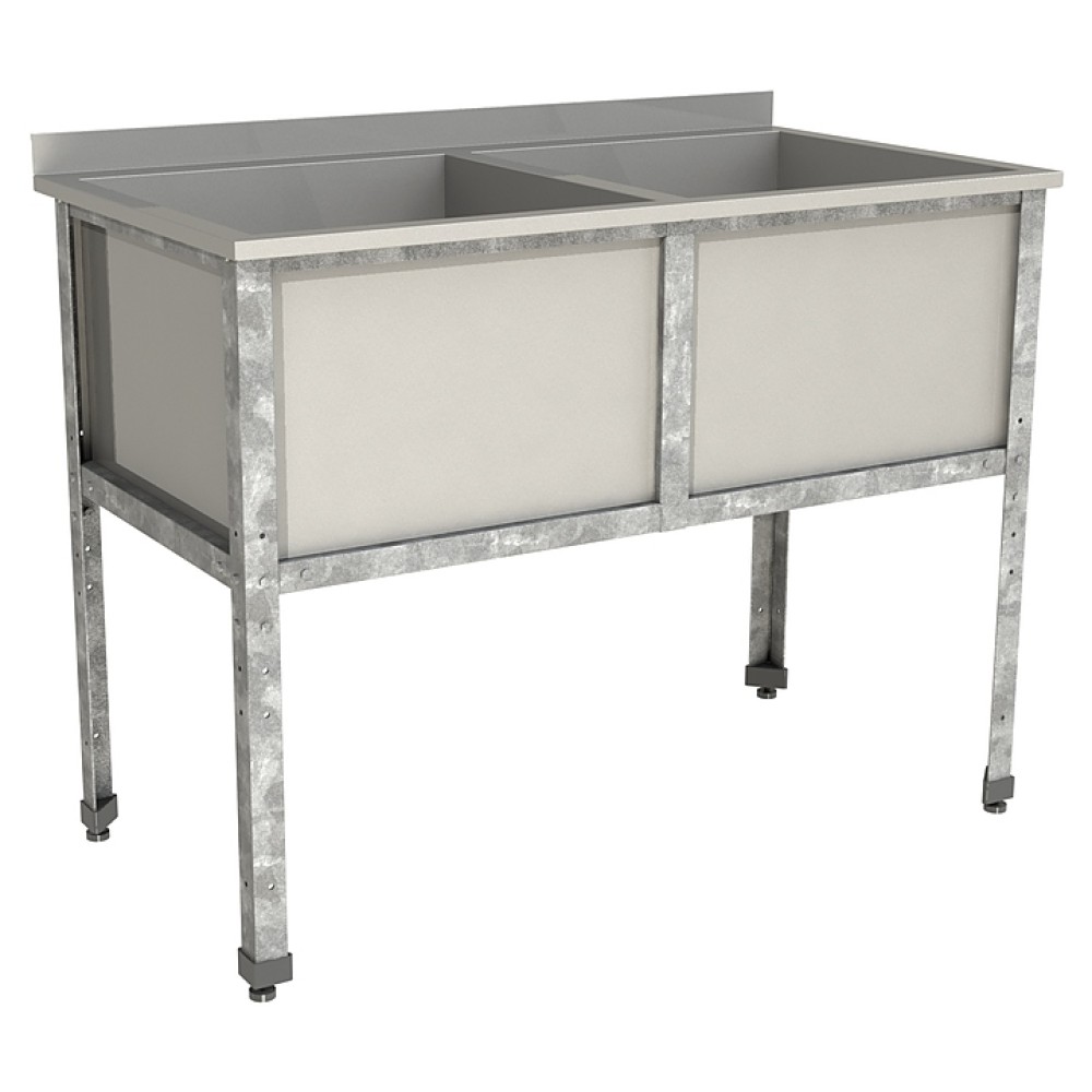 Моечная ванна Restoinox ВМС-2/6-Б-ЭЦ используется на предприятиях общественного питания и торговли для мытья посуды, кухонного инвентаря и продуктов. Модель оснащена площадкой под смеситель с бортом. Каркас выполнен из уголка 40х40 мм оцинкованной стали, емкость - из нержавеющей стали AISI 430.
