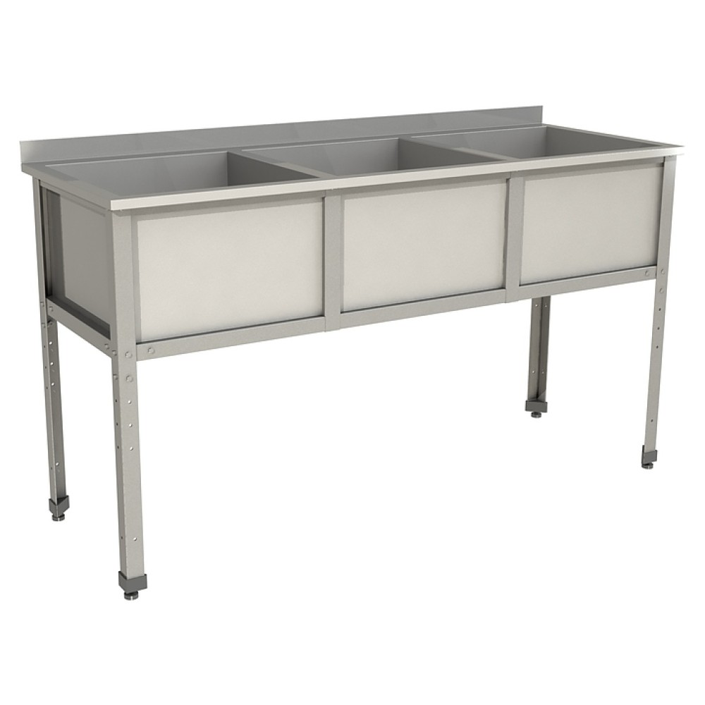 Моечная ванна Restoinox ВМС-3/7-Б-ЭН используется на предприятиях общественного питания и торговли для мытья посуды, кухонного инвентаря и продуктов. Модель оснащена площадкой под смеситель с бортом. Каркас выполнен из уголка 40х40 мм нержавеющей стали AISI 430, емкость - из нержавеющей стали AISI 430.