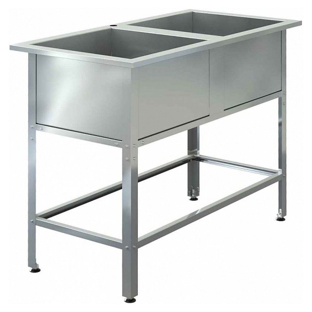 Моечная ванна Assum ВМС-С-2/530 серии Стандарт предназначена для мытья кухонного инвентаря на предприятиях общественного питания. Модель оснащена 2 сварными раковинами, отверстием под смеситель и выпуском. Раковины выполнены из нержавеющей стали AISI 201, каркас – из углового профиля из оцинкованной стали, обвязка с 4 сторон – из профиля из оцинкованной стали, подпятники опор – из прочного пластика.
