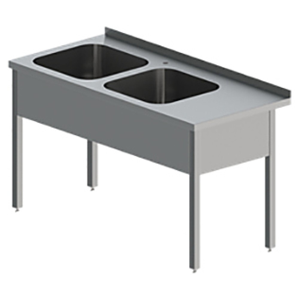 Моечная ванна СкайТек ВМ2 12/7/8,5 М5/5/3 Р используется на предприятиях общественного питания и торговли для мытья и ополаскивания посуды и продуктов питания. Разборная модель оснащена 2 цельнотянутыми мойками с отверстиями под смеситель и фартуками с 4 сторон. Столешница выполнена из нержавеющей стали AISI 430, каркас - из профиля 40х40 мм.
