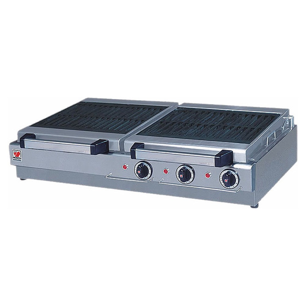 Гриль-мангал North HS 2 CI предназначен для приготовления шашлыка на предприятиях общественного питания и торговли. Модель оснащена 3 терморегуляторами, 2 решетками, световыми индикаторами нагрева, поддоном для сбора жира и ножками. Корпус и поддон выполнены из нержавеющей стали, решетки - из чугуна, ножки - из пластика.