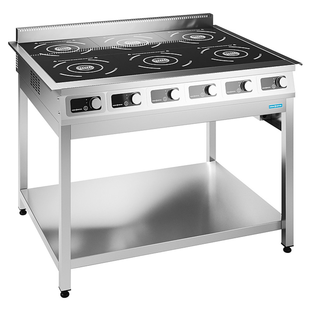 Индукционная плита Новая Энергия ПЭИ-6/L2 предназначена для приготовления различных блюд в наплитной посуде на предприятиях общественного питания и торговли. Модель оснащена боковыми планками для обеспечения вентиляции и регулируемыми опорами. Корпус выполнен из нержавеющей стали марки AISI 430 толщиной 1,2 мм, рабочая поверхность- из закаленного стекла 8 мм, ножки - из нержавеющей трубы 40х40 мм.