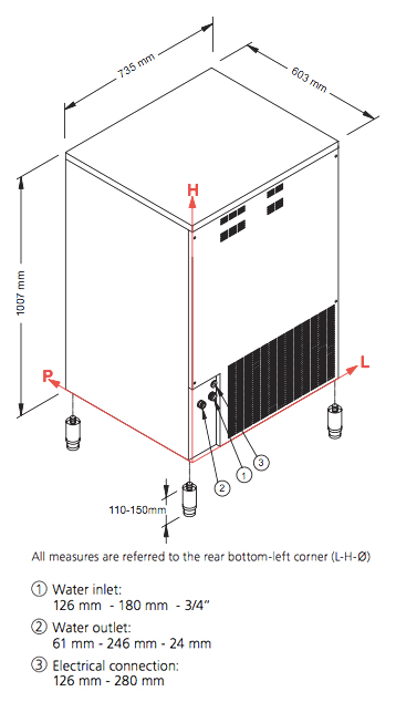 Льдогенератор NTF SL 260 W используется в барах, гостиницах, ресторанах, кафе и на производствах для приготовления льда гурме, который применяется для охлаждения прохладительных напитков и емкостей с жидкостями. Форма кубика подходит для стаканов любой формы. Для монтажа льдогенератора необходимы подводка (вентиль 3/4″) и отвод холодной воды (сток Ø 24 мм). Корпус изготовлен из нержавеющей стали AISI 304 с отделкой Scotch Brite, ножки - из нержавеющей стали.