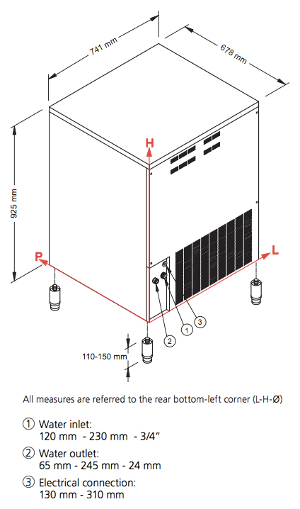 Льдогенератор NTF SLF 320 A используется в магазинах, косметических салонах, больницах, гостиницах, производствах, ресторанах, кафе и барах для приготовления гранулированного льда, который применяется для выкладки и охлаждения разных видов продуктов и медикаментов. Для монтажа льдогенератора необходимы подводка (вентиль 3/4″) и отвод холодной воды (сток Ø 24 мм). Корпус изготовлен из нержавеющей стали AISI 304 с отделкой Scotch Brite, ножки - из нержавеющей стали, испаритель - из нержавеющей стали AISI 304, шнек - из нержавеющей стали AISI 303.