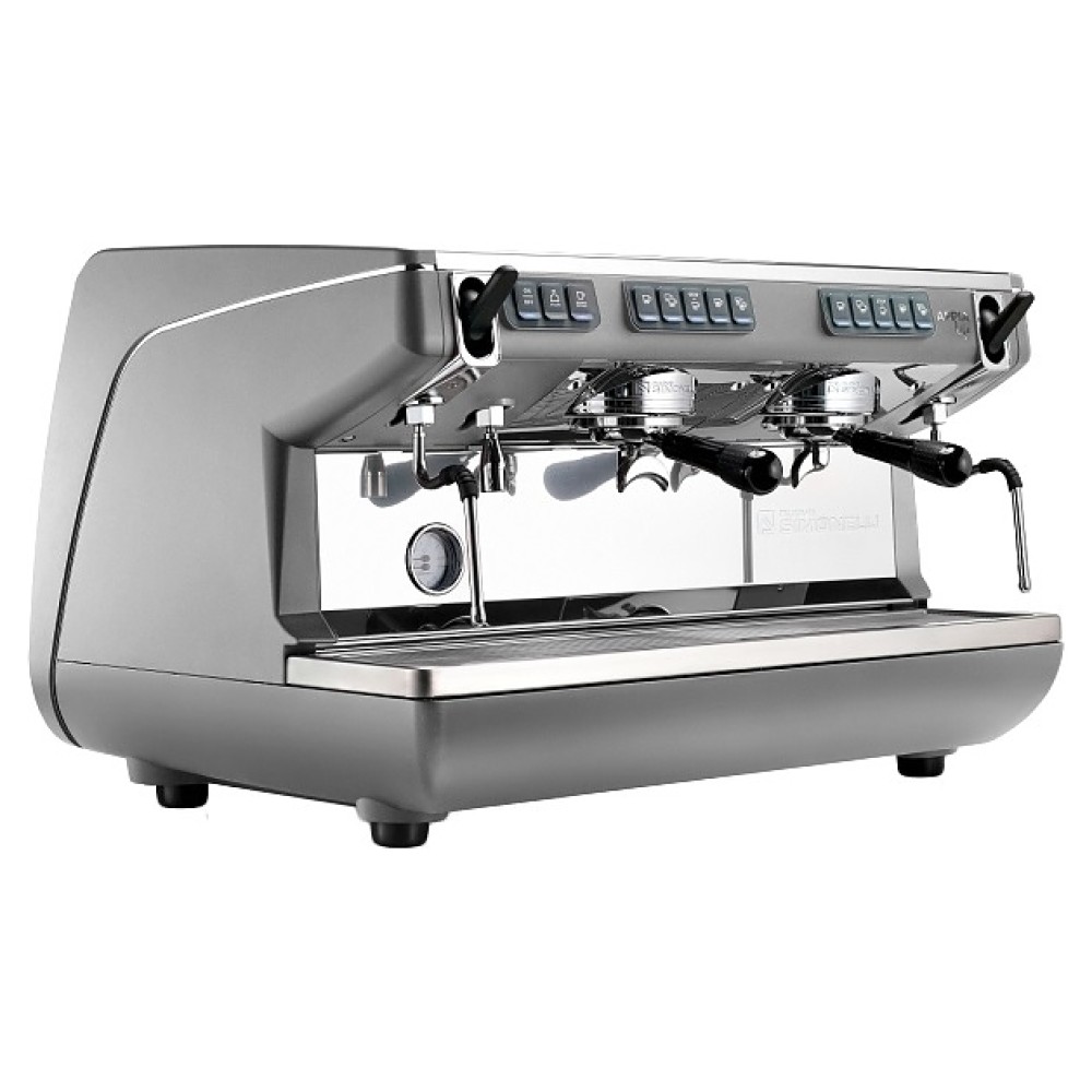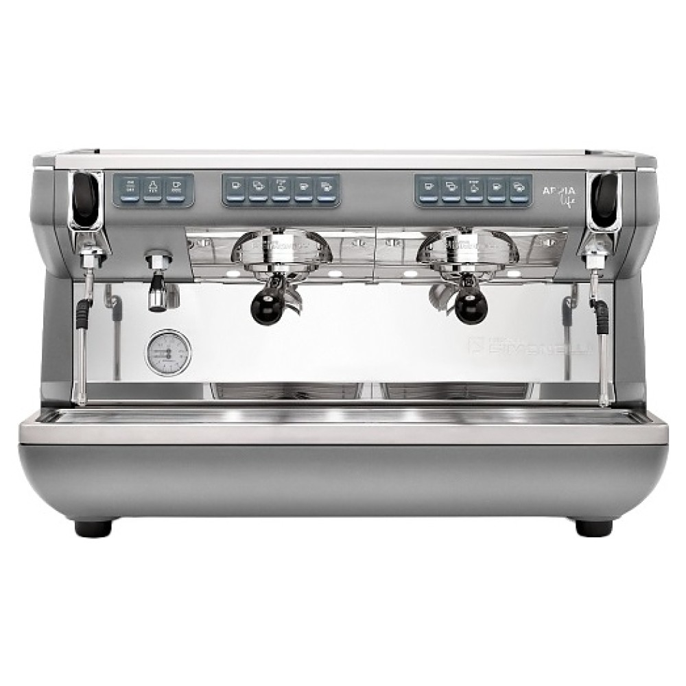 Автоматическая кофемашина Nuova Simonelli Appia Life 2gr V 220V используется в кофейнях, барах, ресторанах и на других предприятиях общественного питания и торговли для приготовления эспрессо и различных кофейных напитков на его основе. Модель оснащена 2 высокими термокомпенсированными рожковыми кофейными группами, 2 трубками подачи пара, соплом подачи горячей воды, основным выключателем колыбельного типа под основанием прибора, персональными панелями для каждой группы с нажимными клавишами и светодиодными индикаторами. Фронтальная, задняя и верхняя панели корпуса, сопла, трубки подачи и решетка подставки выполнены из высококачественной нержавеющей стали, бойлер – из меди, боковые панели и основание корпуса – из ударопрочного АБС-пластика оттенка серый металлик.