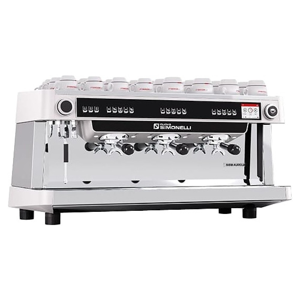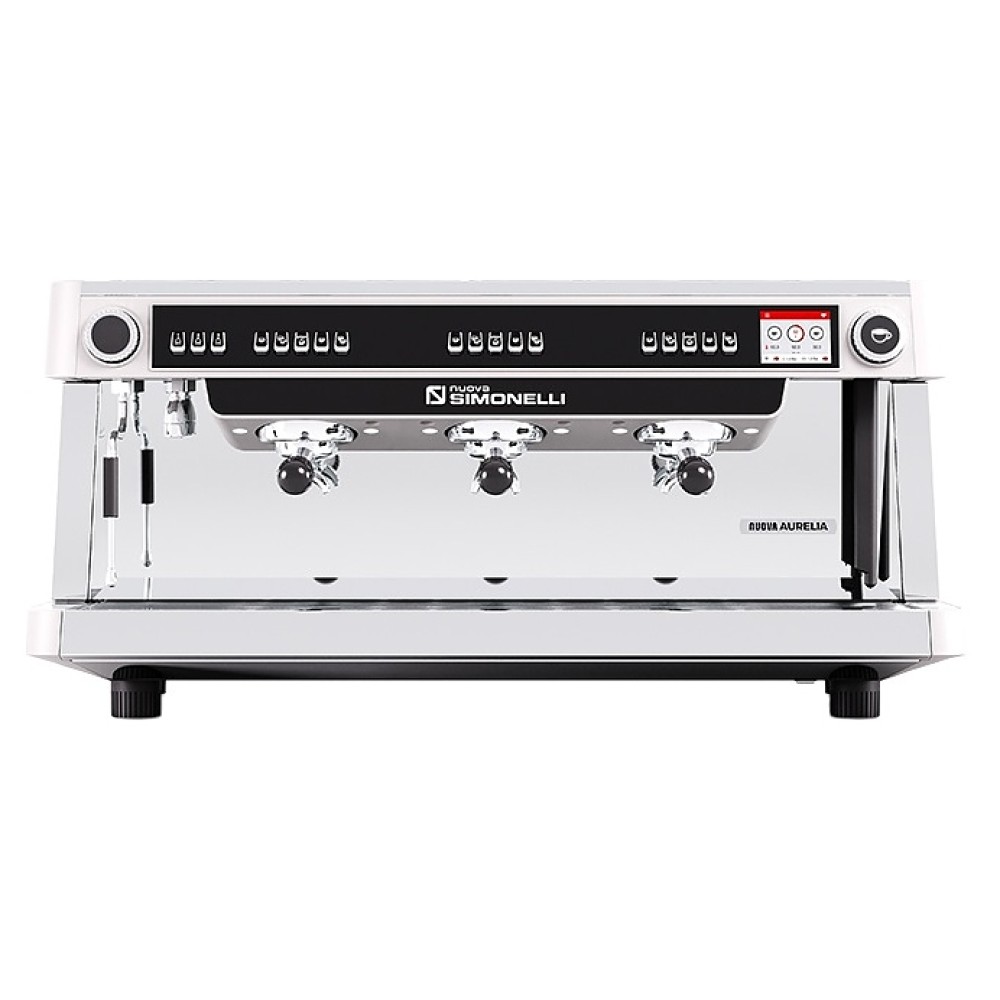 Автоматическая кофемашина Nuova Simonelli Nuova Aurelia MP 3Gr 380V используется в кофейнях, барах, ресторанах и на других предприятиях общественного питания и торговли для приготовления эспрессо и различных кофейных напитков на его основе. Модель оснащена 3 высокими рожковыми кофейными группами, 2 трубками подачи пара E-Steam, соплом подачи горячей воды легкой очистки, основным выключателем колыбельного типа под основанием прибора, основной панелью управления с многофункциональным жидкокристаллическим сенсорным дисплеем (touchscreen), а также персональными панелями для каждой группы с нажимными клавишами и светодиодными индикаторами. Фронтальная, боковые и задняя панели корпуса, бойлеры, сопла и трубки подачи выполнены из высококачественной нержавеющей стали, вставка в верхней части и основание корпуса – из ударопрочного АБС-пластика белого цвета.