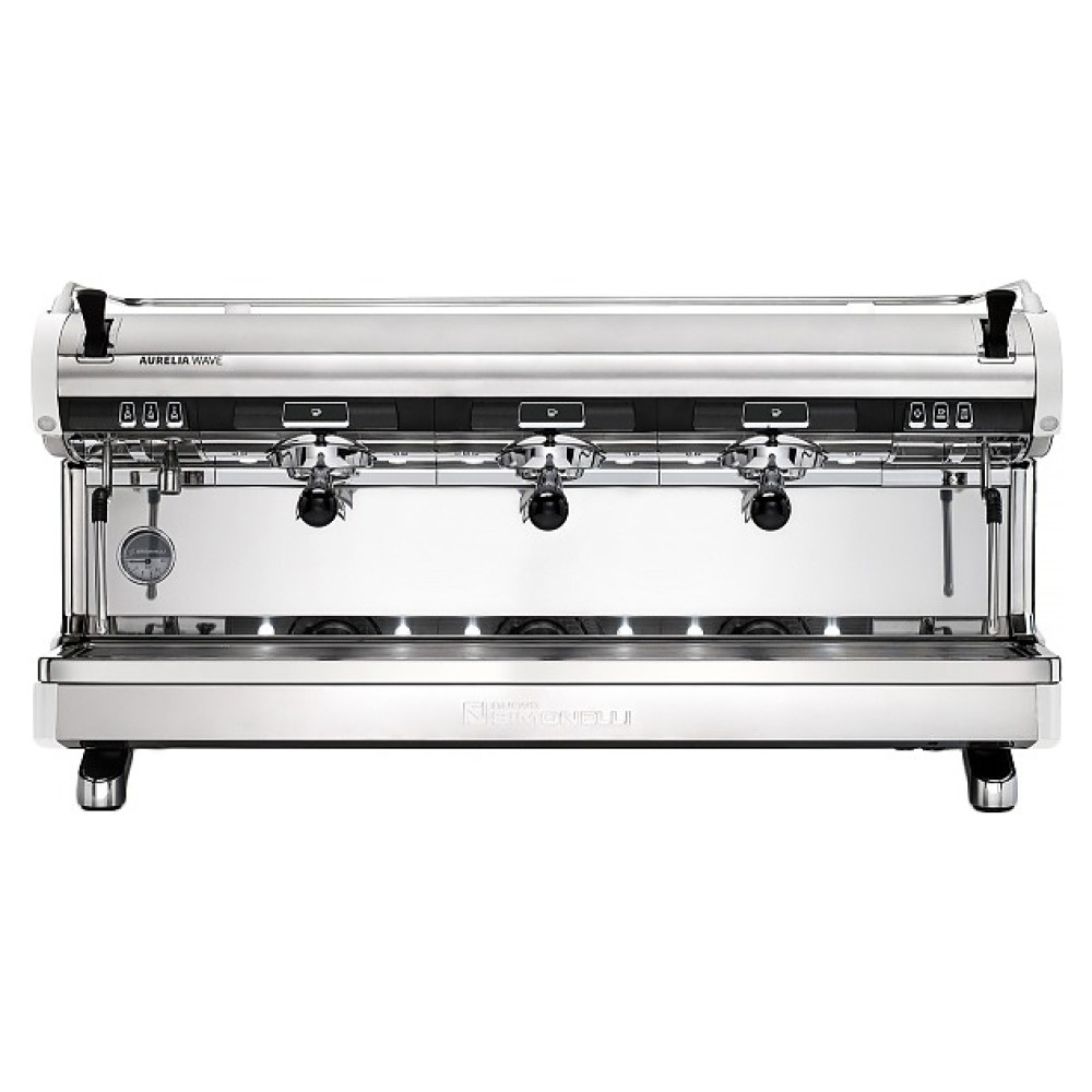 Полуавтоматическая кофемашина Nuova Simonelli Nuova Aurelia Wave 3Gr V 220V используется в кофейнях, барах, ресторанах и на других предприятиях общественного питания и торговли для приготовления эспрессо и различных кофейных напитков на его основе. Модель оснащена 3 высокими рожковыми кофейными группами, 2 поворотными трубками подачи пара, соплом подачи горячей воды легкой очистки, основным выключателем колыбельного типа под основанием прибора, персональными панелями для каждой группы с нажимными клавишами и светодиодными индикаторами. Облицовочные панели корпуса, сопла, трубки подачи и решетка каплесборника выполнены из высококачественной нержавеющей стали, бойлер – из меди, декоративные С-образные вставки на боковых панелях корпуса – из ударопрочного АБС-пластика жемчужно-белого оттенка.