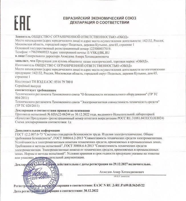 | Мощность12 кВт | Напряжение380 В | Объем казана100 л |