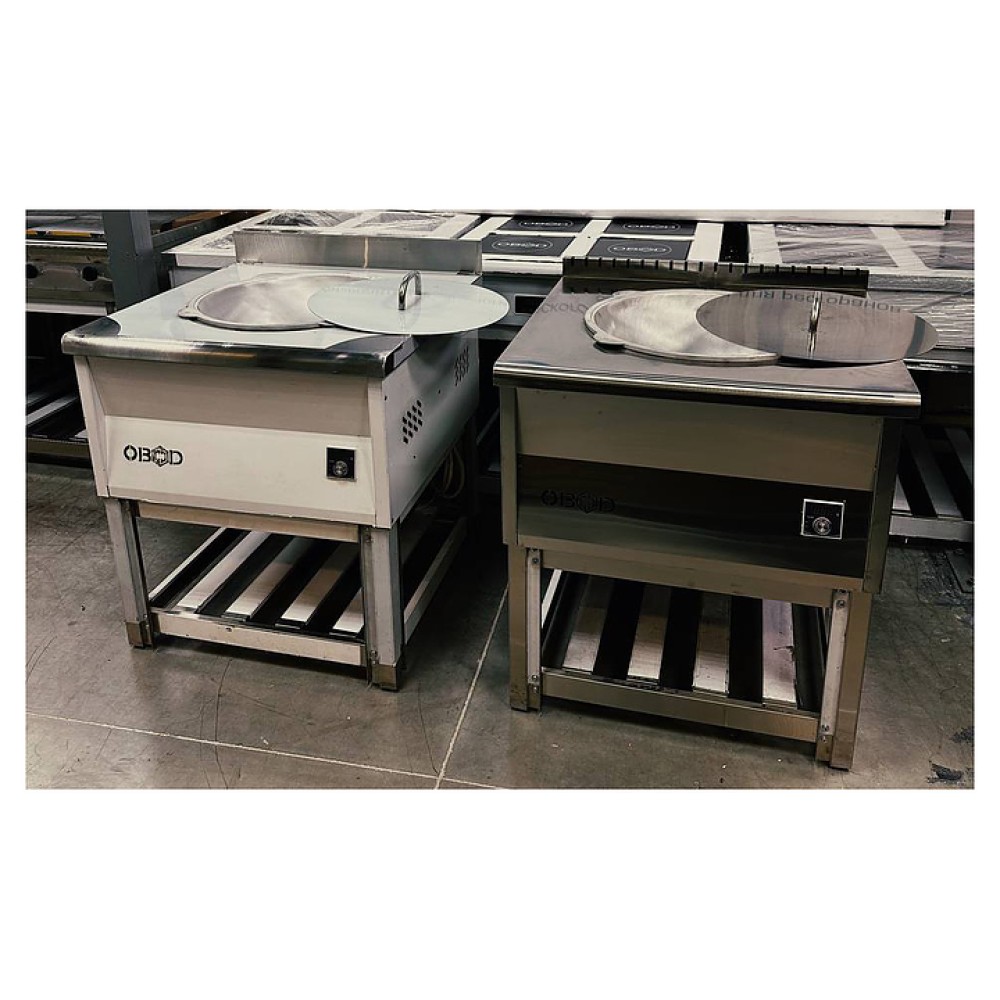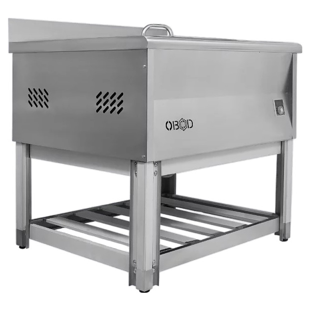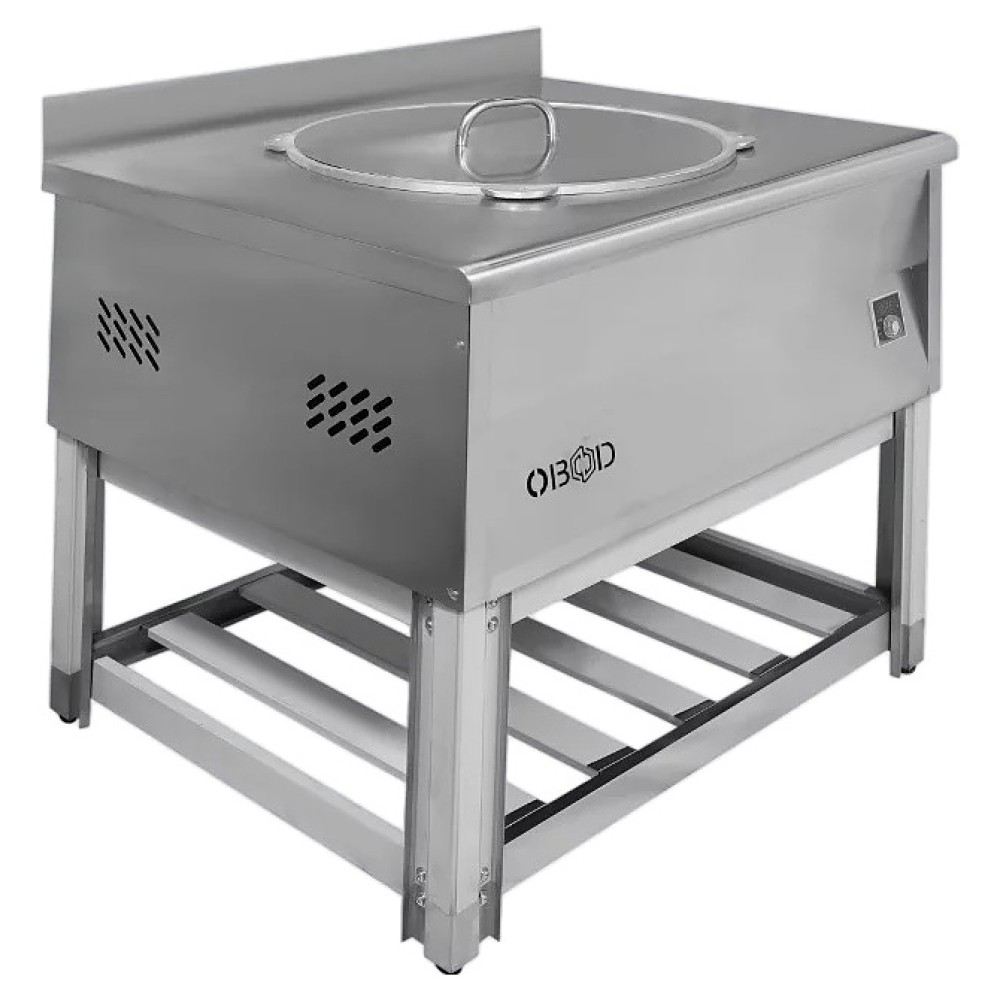 Электрический казан OBOD КЭ-100 предназначен для приготовления первых и вторых блюд, жарки и тушения продуктов, пассирования овощей, а также припускания мелких рыбных и овощных изделий на предприятиях общественного питания и торговли. Модель оснащена интегрированной в столешницу чашей, съемной крышкой с дугообразной ручкой, задним бортом, открытой подставкой и электромеханической панелью управления. Корпус выполнен из пищевой нержавеющей стали.