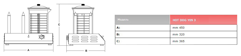 Аппарат для хот-догов Sirman Y09 3 используется на предприятиях общественного питания и торговли для отваривания сосисок и подогрева булочек. Модель оснащена 3 штырями для булочек и электрическими компонентами с автономной защитой при возможных утечках жидкости.