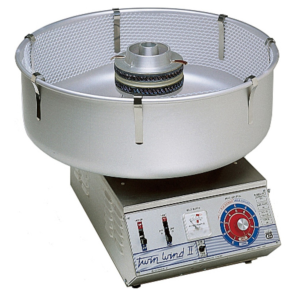 Аппарат для сахарной ваты Gold Medal Twin Wind II используется в уличных кафе, кинотеатрах и развлекательных центрах. Оборудование оснащено нагревательной спиралью. Ловитель выполнен из алюминия.