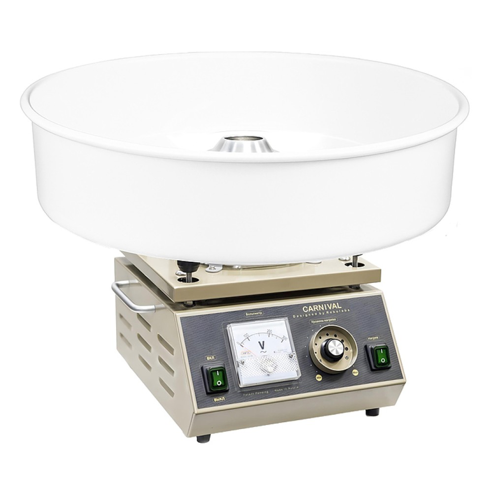 Аппарат для сахарной ваты RoboLabs Carnival используется на предприятиях общественного питания и торговли. Модель оснащена регулятором точной настройки мощности, индикатором мощности нагрева (стрелочным вольтметром) и защитой регулятора настройки.