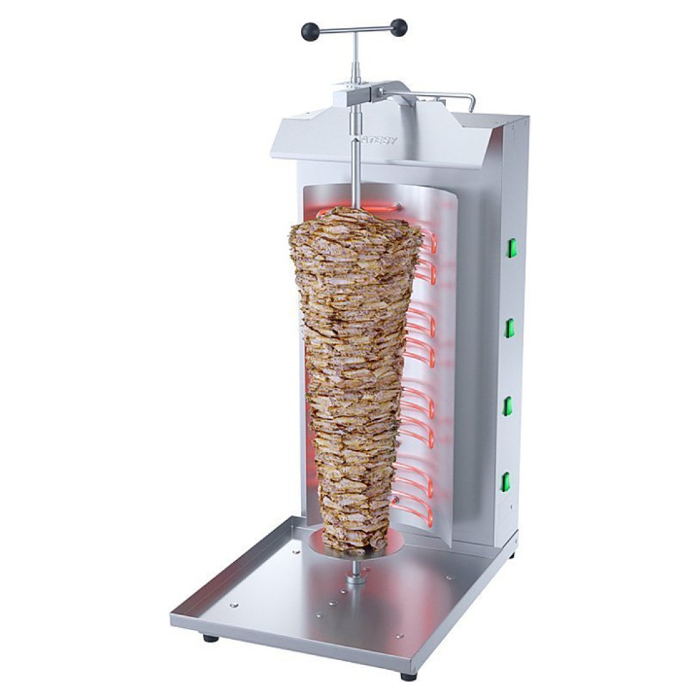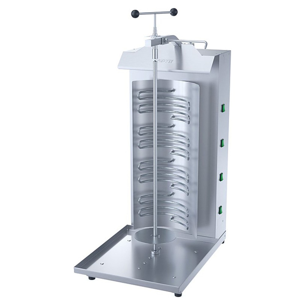 Электрический гриль ATESY Шаурма 4-Эл-05-Оц используется на предприятиях общественного питания и торговли для приготовления мясной начинки популярного блюда шаурма (шаверма). Модель оснащена 4 трубчатыми электронагревателями (ТЭНами). Корпус выполнен из оцинкованной стали, все элементы, контактирующие с пищей - из материалов, разрешенных для контакта с пищевыми продуктами.