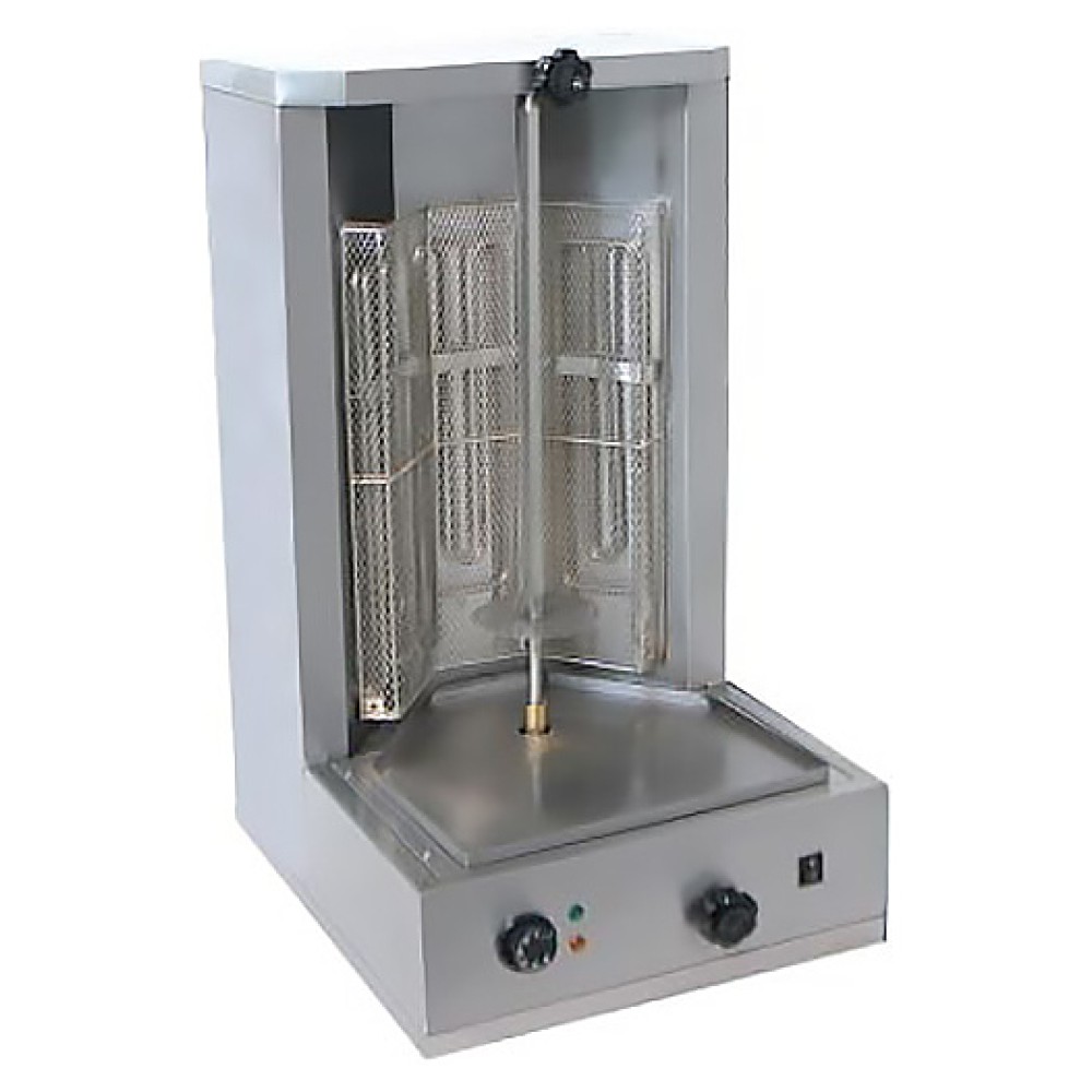 Гриль для шаурмы Foodatlas VGB-890 предназначен для обжарки мяса на предприятиях общественного питания и торговли. Вертикальная модель оснащена поддоном для масла, 3 нагревательными элементами и регулятором температуры. Корпус и шампур выполнены из нержавеющей стали.