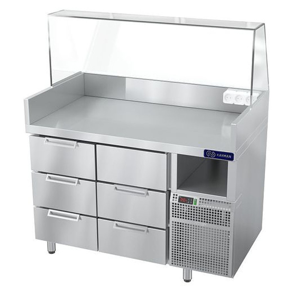 Станция KAYMAN СП-БХ-1235-01-Т-ЛБ А предназначена для комплексного оснащения рабочего места приготовления и продажи хот-догов и бургеров, а также для хранения предварительно охлажденных мясных полуфабрикатов, хлебобулочных изделий, начинок и соусов на предприятиях общественного питания и торговли. Модель оснащена столешницей для установки технологического оборудования (гриля комбинированного КГЭ-7-Н А, КГЭ-6-Н А, КГЭ-7-УС А или гриля контактного ГКЭ-1-Р-Ч А, ГКЭ-1-Р А, ГКЭ-1-Г А, ГКЭ-1-2Г А) и встроенным холодильным агрегатом. Все конструктивные элементы, контактирующие с продуктами питания, выполнены из нержавеющей стали.