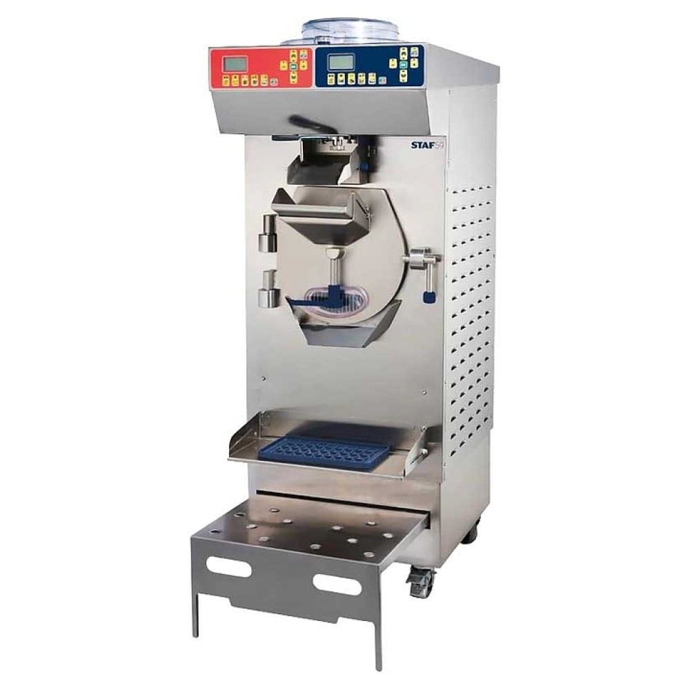 Фризер-пастеризатор STAF59 RHB15/100 W используется для приготовления мороженого, кондитерских кремов и джемов на предприятияx общественного питания и торговли. Пастеризация снижает бактериальную обсемененность сырья и свежих полуфабрикатов без ухудшения органолептических и питательных свойств продуктов. Модель состоит из 2 раздельных независимых резервуаров, каждый из которых оснащен компрессором и инвертором, что обеспечивает непрерывный производственный цикл без простоев. Верхний резервуар предназначен для термического/пастеризационного процесса, нижний - для заморозки партии. Перемещение смеси из верхнего бака в нижний возможно благодаря внешнему каналу. Корпус, дверь нижнего бака и мешалки выполнены из нержавеющей стали, скребки нижнего бака - из полиоксиметилена, скребки верхнего бака - из полиэтилена.