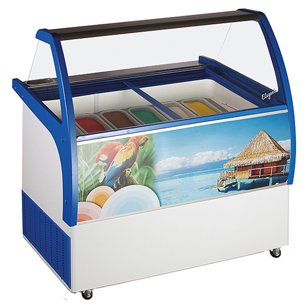 Витрина для мороженого CRYSTAL VENUS 36 ELEGANTE используется на предприятиях общественного питания и торговли для демонстрации и хранения мороженого и сорбета. Модель оснащена цифровым термометром, гнутым стеклом, LED-подсветкой и 4 колесами. Внутренняя отделка выполнена из нетоксичной стали.