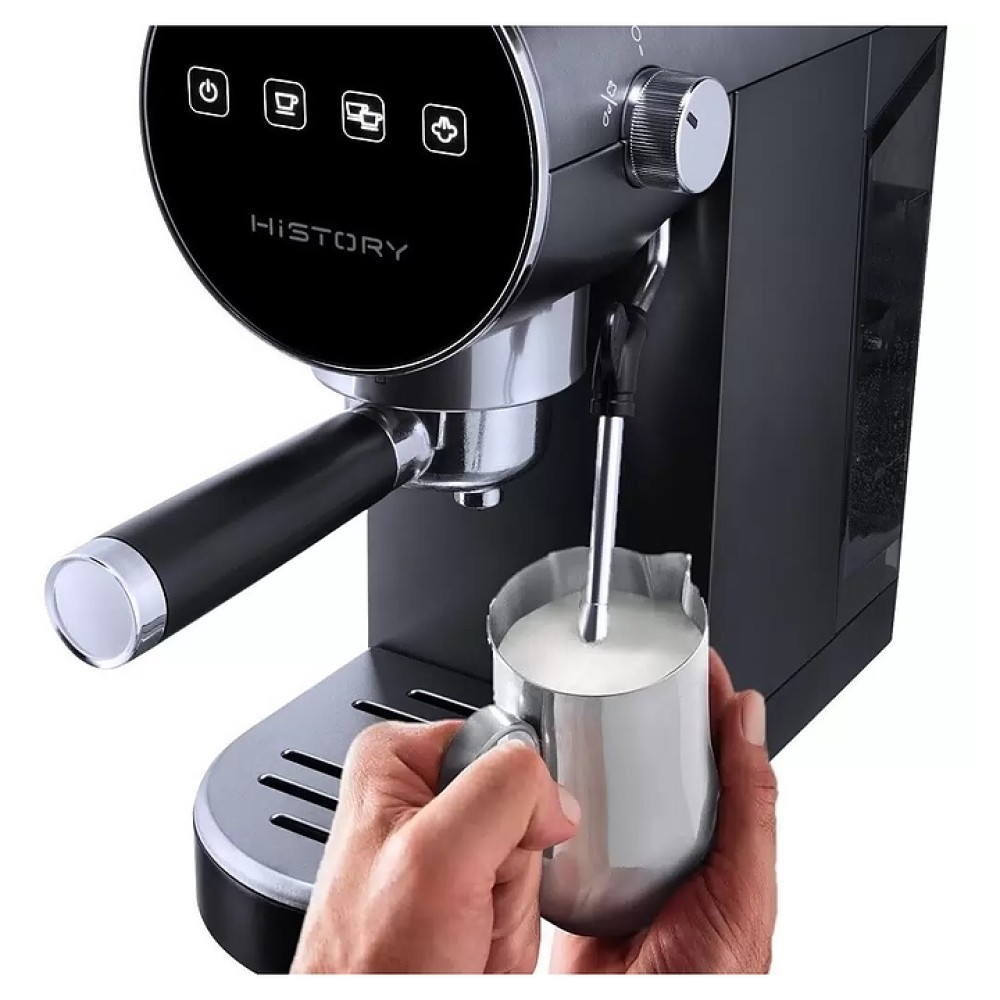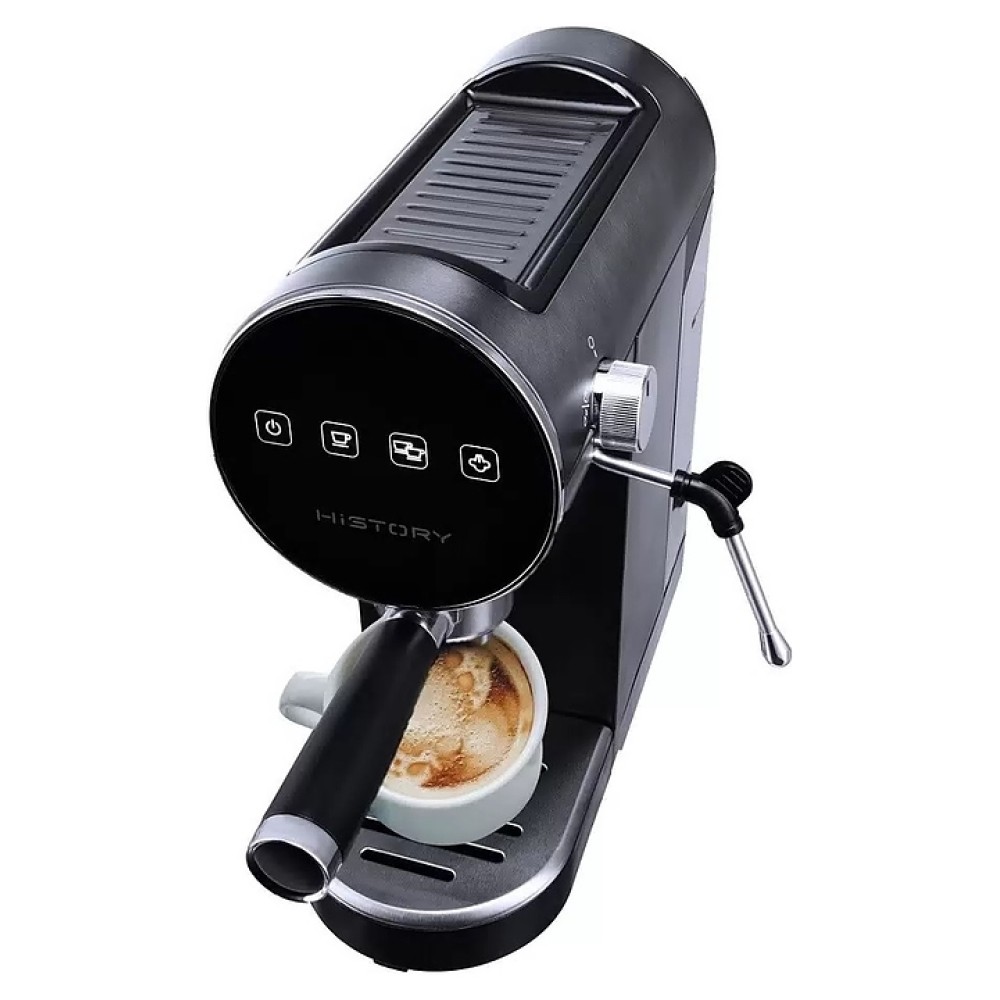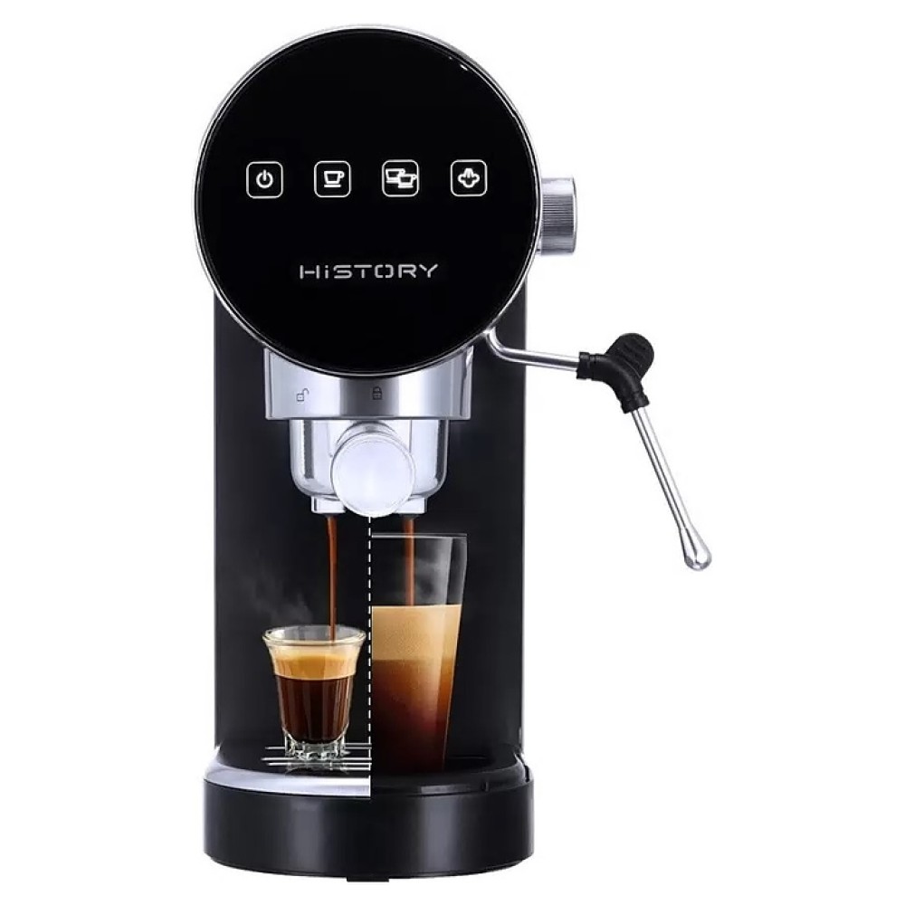 Полуавтоматическая рожковая эспрессо кофемашина HiSTORY ICM-XD2010 предназначена для приготовления кофе эспрессо и напитков на его основе в гостиницах, офисах и домашних условиях. Модель оснащена профессиональным насосом ULKA (Италия), парогенератором, кабелем питания с вилкой и расположенным на круглой фронтальной стенке панелью управления с сенсорными функциональными клавишами и светодиодными индикаторами. Корпус выполнен из нержавеющей стали марки AISI 430 и пластика без содержания бисфенола A (BPA) с матовой поверхностью в комбинации темно-серого цвета и оттенка графит, решетка каплесборника и трубка подачи пара – из нержавеющей стали, фильтры и корпус холдера – из литого алюминия, резервуар для воды – из пластика, рукоятка холдера – из черного полимера, панель управления – из IMD пластика с черной поверхностью.